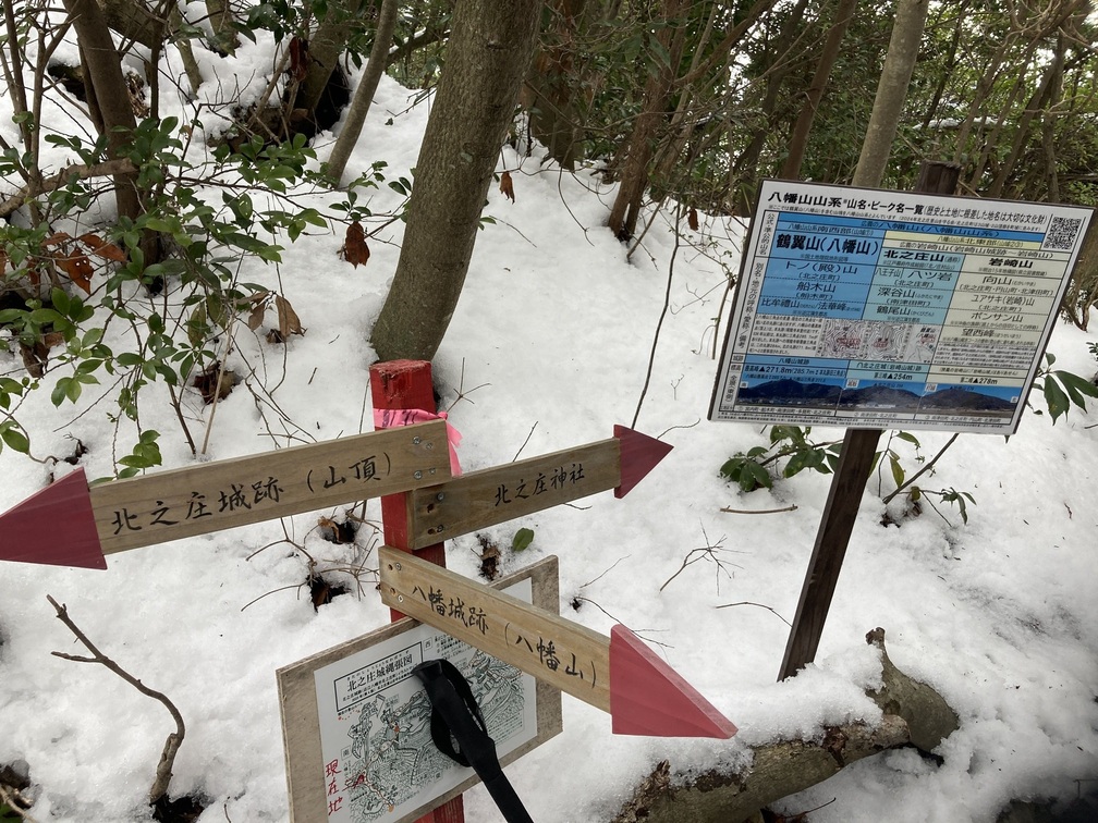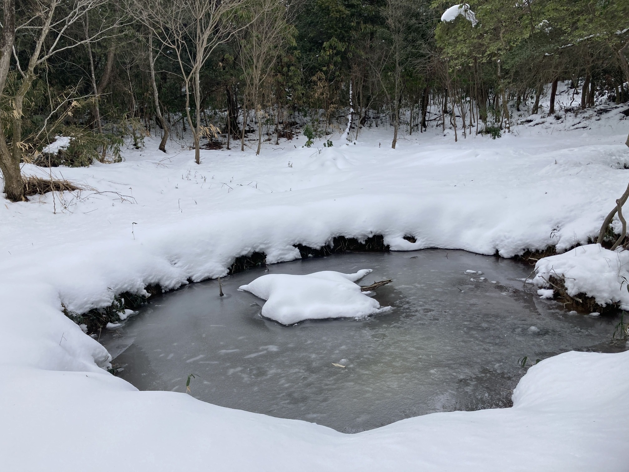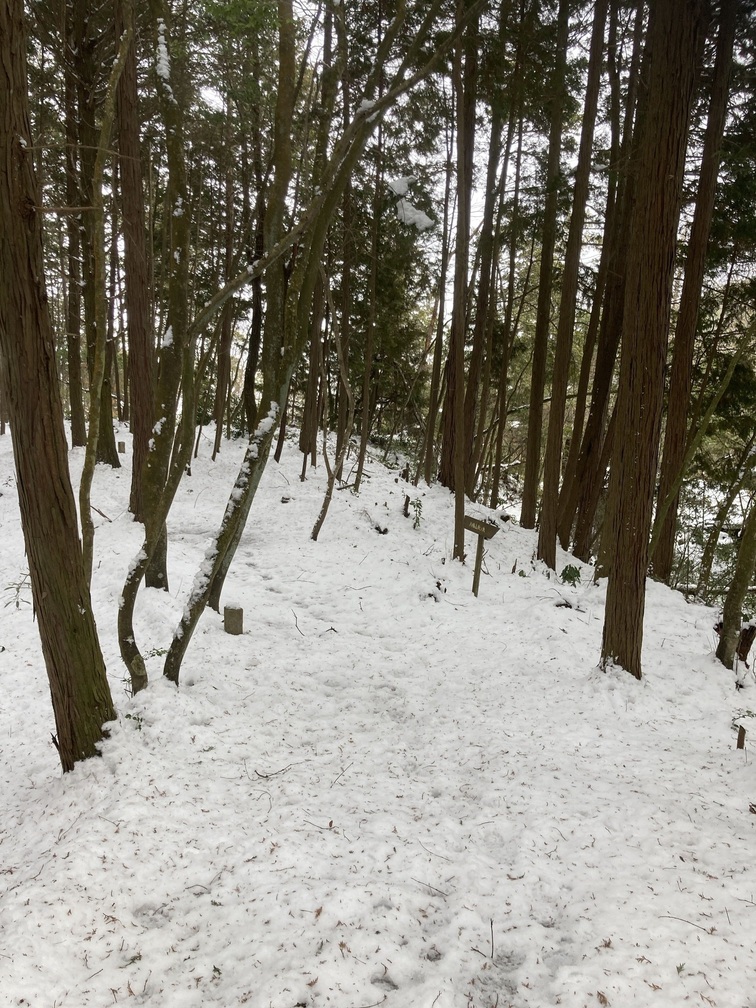 かつては尾根全体がお城。井戸の跡なのか、小さな池が雪の中に沢山隠れています